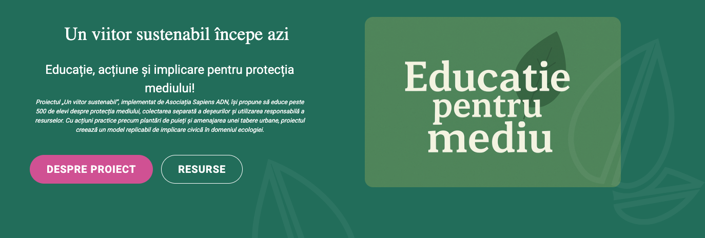 Proiectul „Un viitor Sustenabil” este finanțat din Fondul pentru Mediu prin Programul pentru Educația și Conștientizarea Publicului Privind Protecția Mediului, gestionat de Administrația Fondului pentru Mediu, prin CFN 684/H/13.06.2024, implementat de Asociația Sapiens ADN, în parteneriat cu Liceul Ioan Petruș, Otopeni.